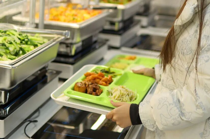 进入食堂拿取托盘