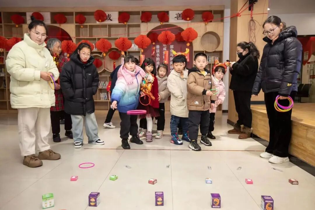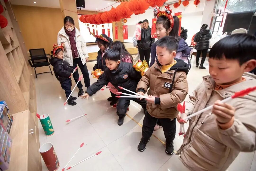 游戏互动区,孩子们踊跃参与到猜灯谜、投壶、套圈乐等活动中来,赢取小礼品或参与抽奖,现场笑声不断。手工区也热闹非凡,孩子们兴致勃勃地画着自己的蛋壳画,品尝热腾腾的元宵,趣味和甜蜜同时拉满。依托灯谜载体,现场还组织了“党员冬训”知识竞赛,有些党员还在灯笼上写下习近平总书记的金句,并话体会谈感悟,让传统习俗焕发新活力。