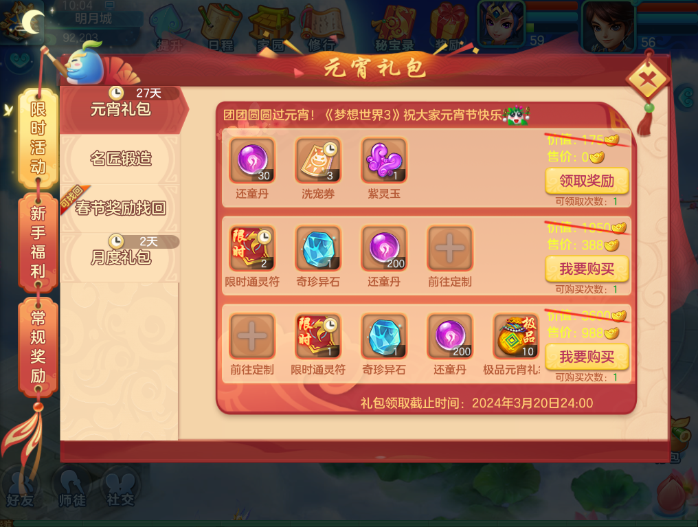 3.元宵礼包上线