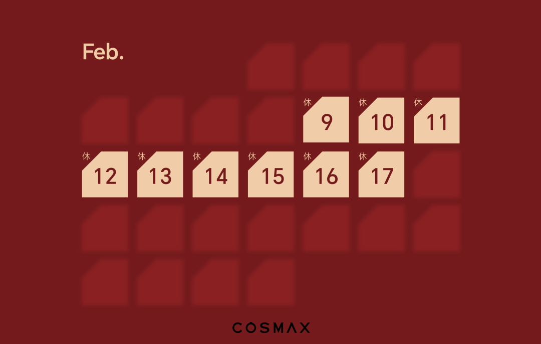 COSMAX科丝美诗春节放假时间为: