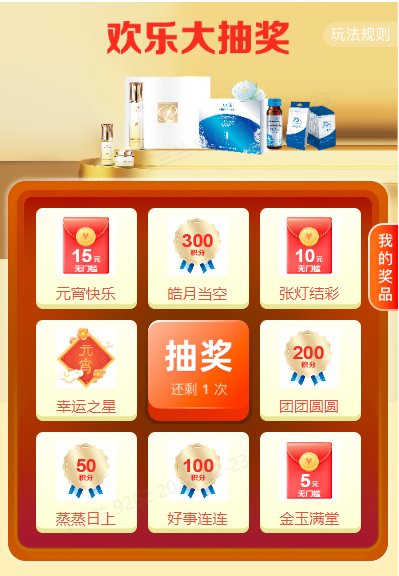 活动规则:关注公众号,抽取奖品,100%中奖,无门槛优惠券以及积分可用于【国药现代健康中心】微信商城。