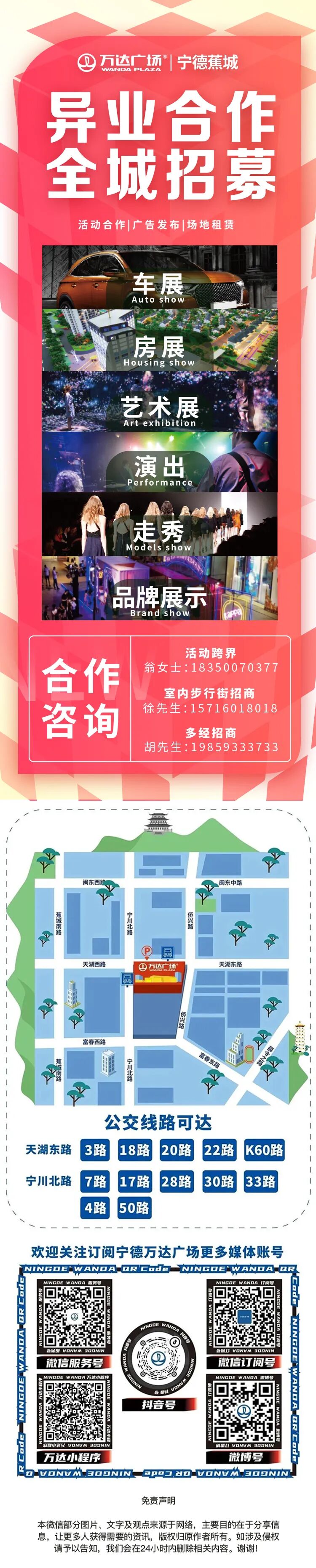 文章内容来源于公众号:宁德万达广场,点此可查看原文,内容版权归相关企业所有,本网站仅供交流学习。若涉及版权问题或存在侵权情况,请及时与我们联系,我们将第一时间进行删除处理。
