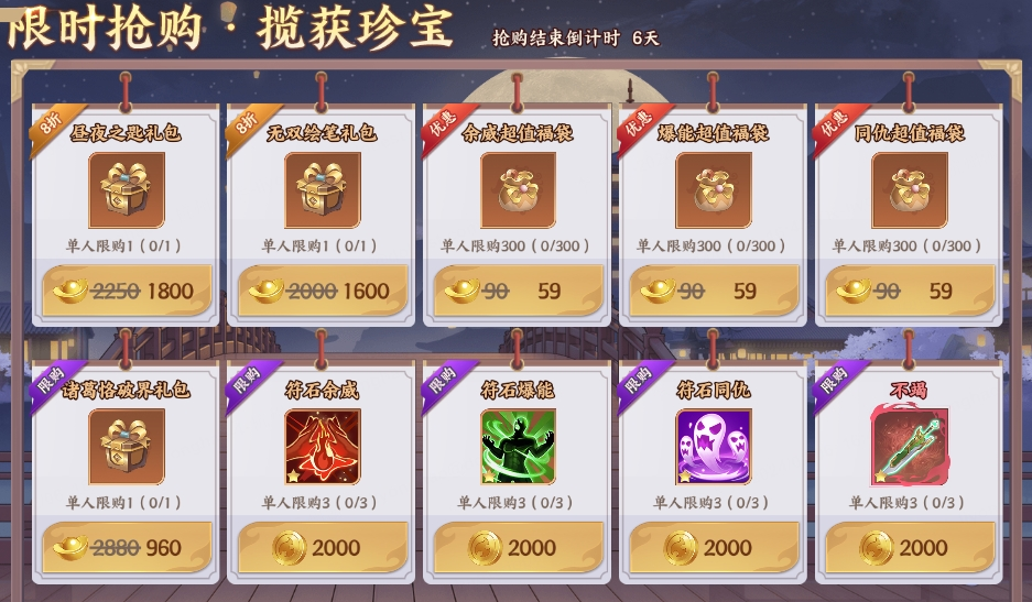 1800元宝购买昼夜之匙礼包(昼夜之匙50个)(限购1次)
