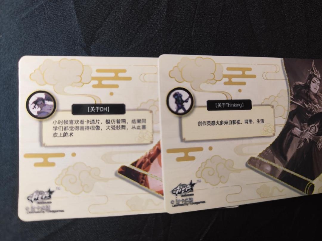 在画师卡的卡背还有画师们的语录:创作时灵感乍现的瞬间、对玩家和游戏的寄语,以及一些日常的碎碎念等等。各位可以通过这些言语了解画师们的日常生活与工作状态~