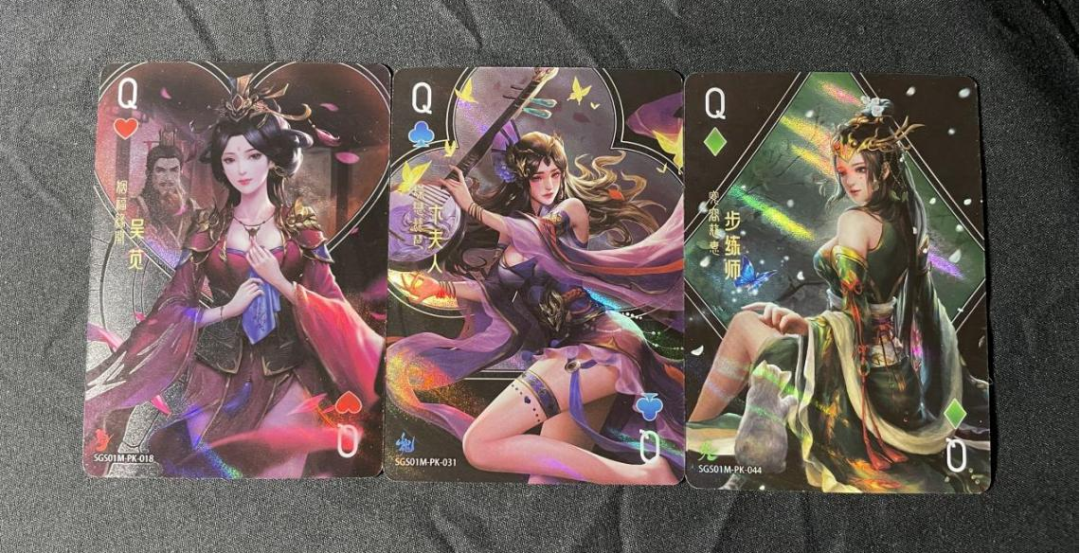 相信对于《三国杀》玩家而言,如果能把收藏和玩法合一,那绝对是再好不过,而龙虎之章中最基础的卡级“PK”便能满足各位。PK卡是将扑克花色、数字和字母与对应的三国人物相结合,如K(王)、Q(后)等。各位只要集齐一套,就能用收藏卡来上一场真·《三国杀》斗地主了~