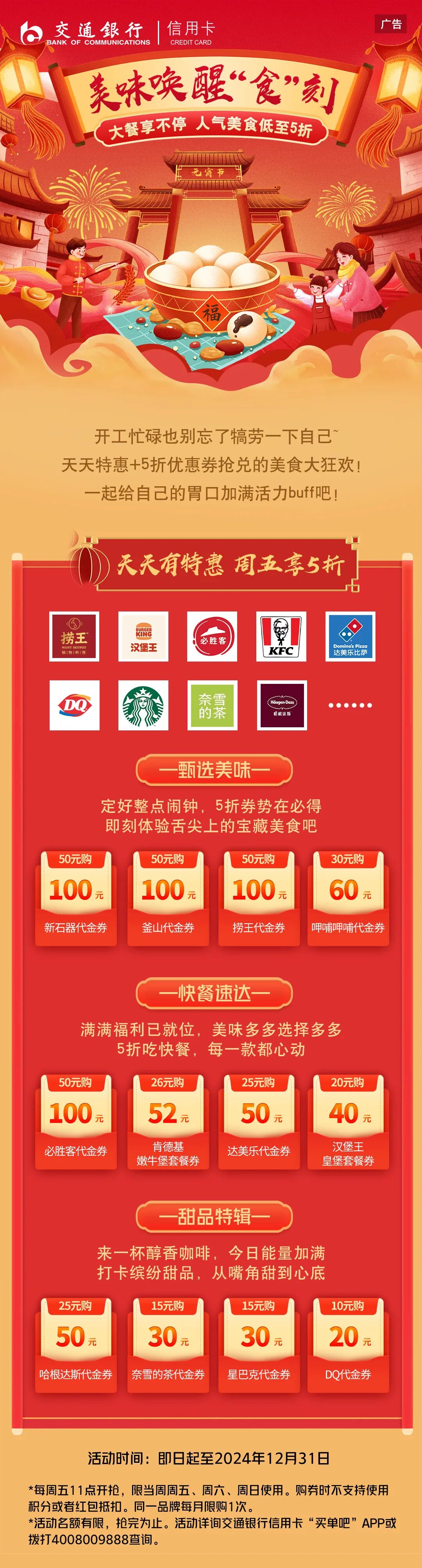 周末冲刺!5折代金券定时开抢,唤醒美味食刻
