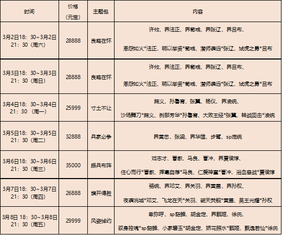 3月3日(星期日):欢乐豆*333+龙跃凤鸣*庞统试用(静态+动态)*1