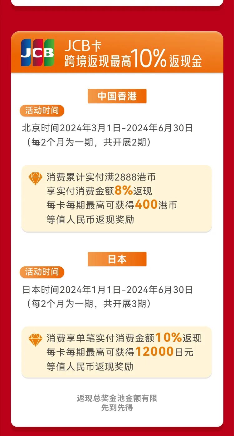 摘要:银联卡、万事达卡、运通卡、JCB卡跨境消费享返现