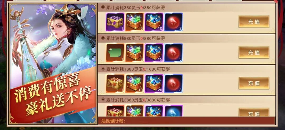 活动说明:活动期间累计消费指定数量灵玉即可获得相应奖励;消费不同额度的灵玉可获得不同的好礼,累计消费灵玉越多奖励越丰厚,更有气泡框-雪融春来、神羽-狂暴之翼、极品魂石、觉醒石、黄泉神石等珍贵道具等你来拿噢!
