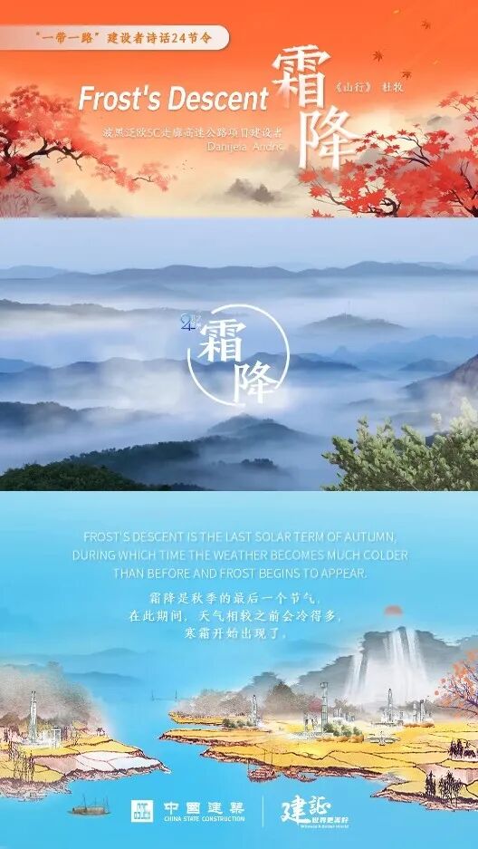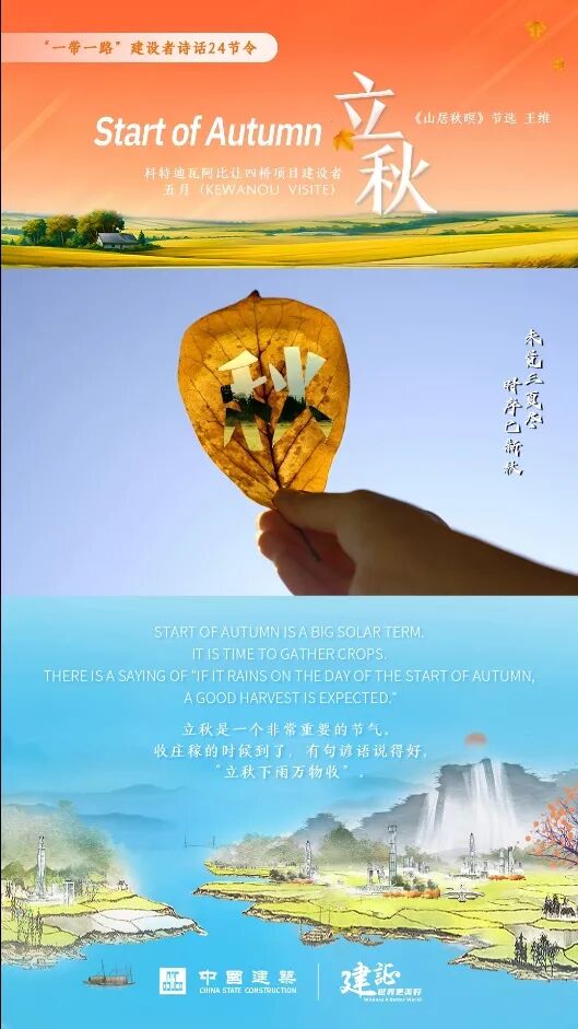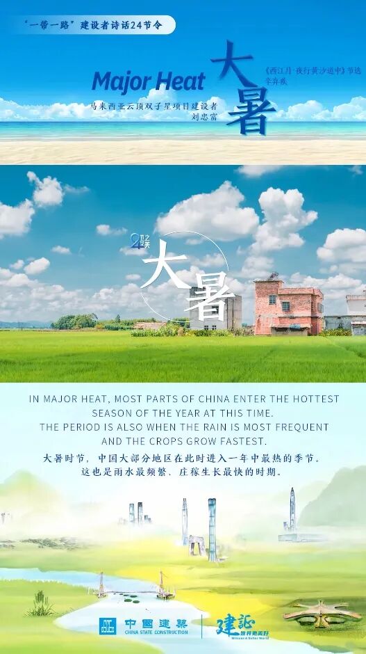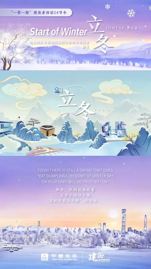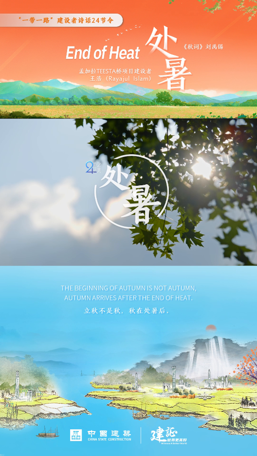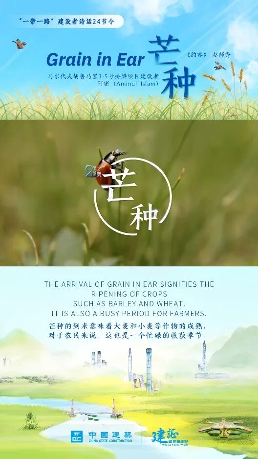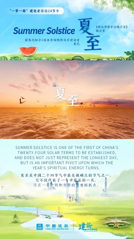 从沙漠腹地的埃及新首都CBD,到穿越丛林的中泰高铁,再到通达世界的柬埔寨新金边国际机场,《“一带一路”建设者诗话24节令》每期邀请一位项目属地员工,站在中国建筑承建的“一带一路”重点民生工程前,以中英文双语朗诵中国古诗词,在语言的碰撞和交融中,传颂人民对美好生活从古及今的不懈追求,抒发了共赴城市新生、百姓安居、交通畅达、经济繁荣、民心相通的美好愿景。