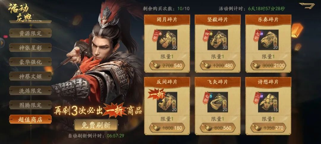 消耗元宝,两折甚至一折优惠购买技能碎片!