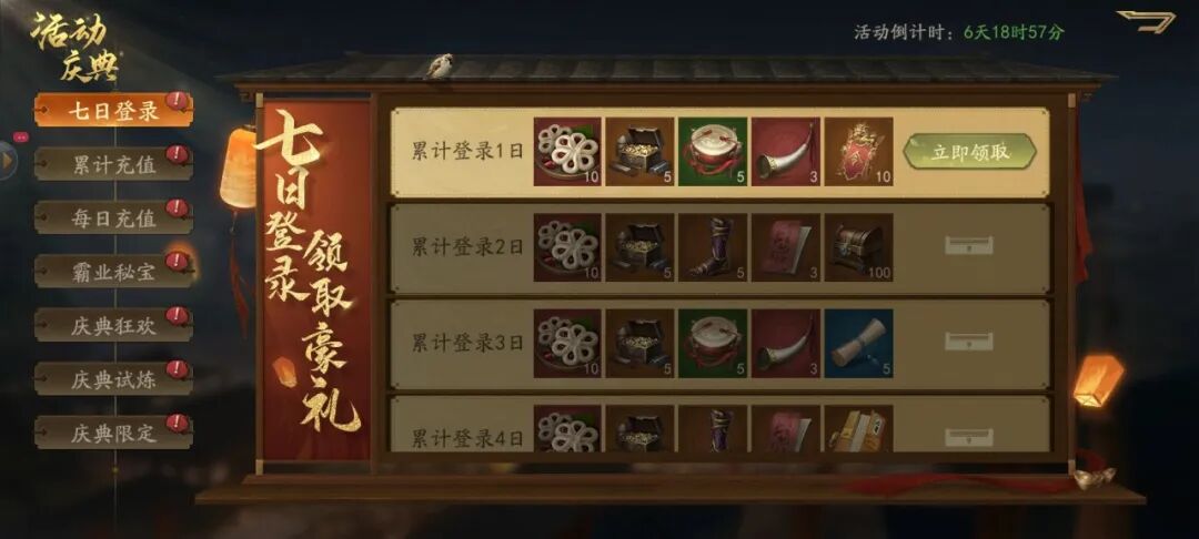 完成庆典试炼与登录活动,获得庆典活动道具,兑换游戏内重要物资!