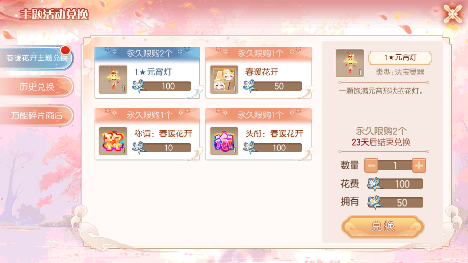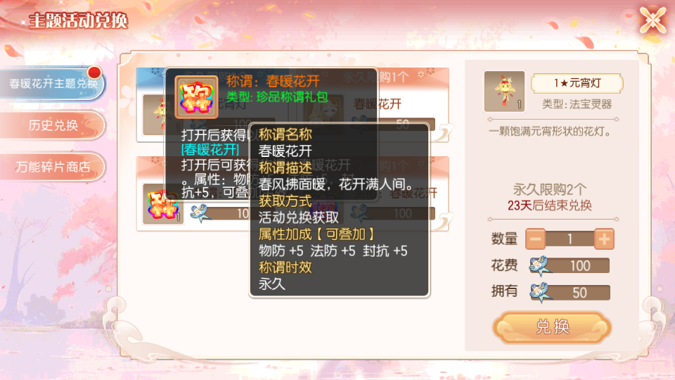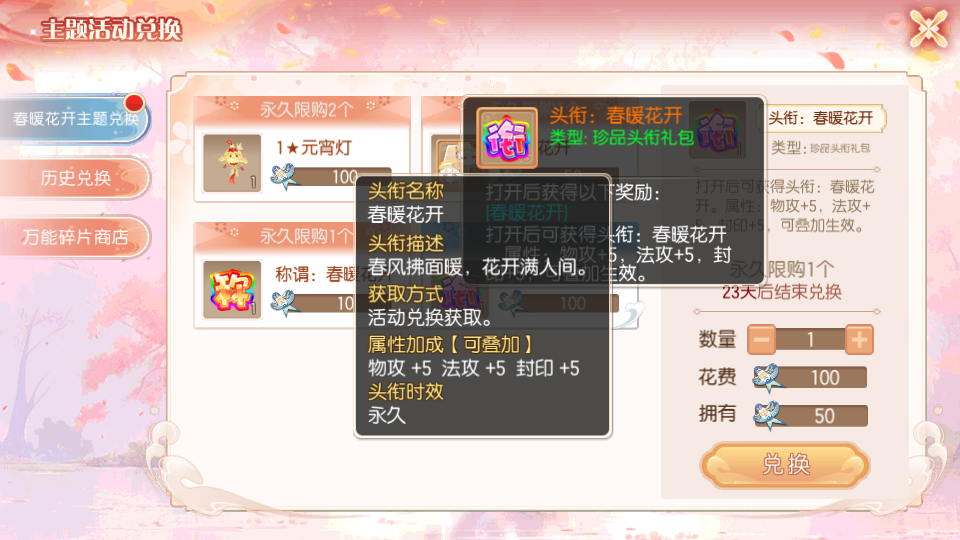 春暖花开主题兑换商店开业啦!少侠们只要参与系列春日活动,就能获得兑换道具【春暖花开】,用于在限时主题商店内兑换各种稀有道具!少侠们赶快出发参与活动,兑换自己的心仪之物吧~