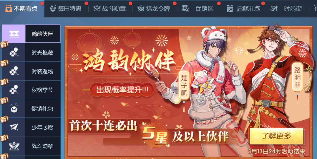 全新动态伙伴特典卡池又要来啦!2月29日更新后-3月13日24时,动态伙伴招募:鸿韵第二期将限时开启动态活动特典卡池!