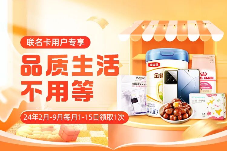 联名卡特邀用户在活动期间前往活动页面领取一个品类券包。