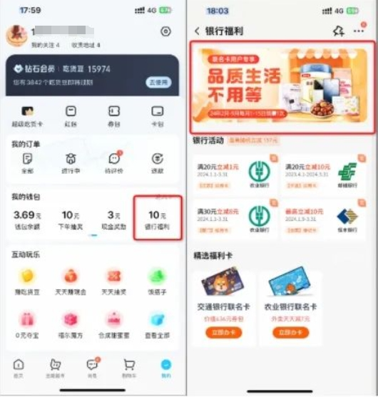活动期间前往饿了么APP-我的-我的钱包【10元银行福利】