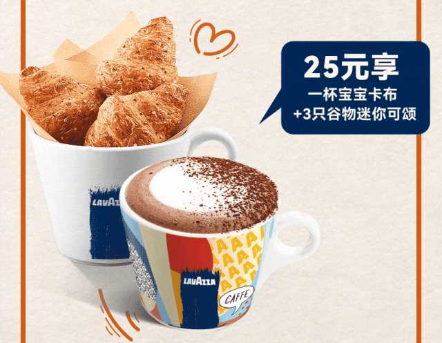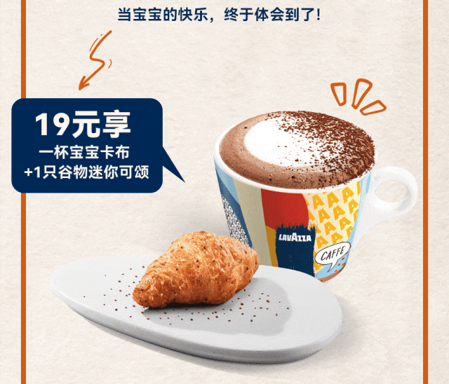 1.宝宝卡布可颂套餐,自2024年03月7日供应,套餐含:宝宝卡布1杯+谷物迷你可颂1只*(不支持外带,限堂食)。