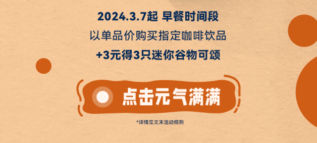 1.宝宝卡布可颂套餐,自2024年03月7日供应,套餐含: 宝宝卡布1杯+谷物迷你可颂3只*(不支持外带,限堂食)。