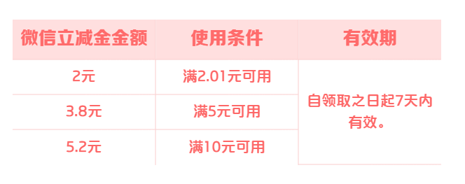 立减金自领取之日起7天内有效。同一用户最多可领取1次,活动名额520份,先到先得,领完即止。