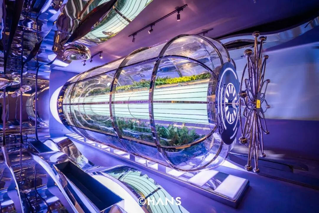 武汉K11整体定位“高端、奢华、雅致”,针对女士、男士和儿童分别设计不同主题中庭,其中女性中庭——Woman Chamber 从一楼贯通五楼,堆满无数个粉红盒子装置,是商品最好的展示区,更是女性青睐的打卡互动沉浸式体验空间。艺术装置「 Urban Farm 」以太空舱为灵感,用霓虹光管、波浪元素贯穿,超高颜值引爆社媒。