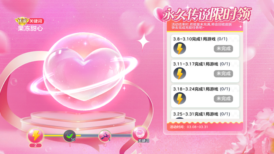 3月8日-3月31日,波拉哩女神节福利盛典开启,女神节限定传说关键词「果冻甜心」送给最美丽的你!活动期间,登录游戏完成任务即可免费领取传说关键词「果冻甜心」,妳就是波拉哩最软最甜的宝贝~