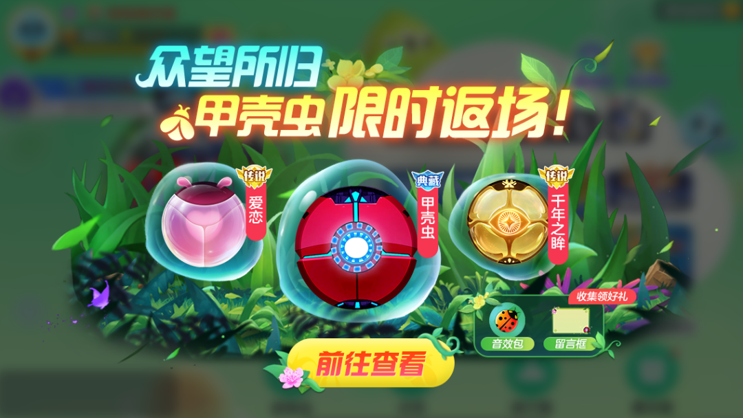 图鉴:甲壳虫正式上线,收集甲壳虫系列相关皮肤(甲壳虫/粉梦甲壳虫/甲壳虫·千年之眸),即可获得专属甲壳虫留言框与甲壳虫音效包!