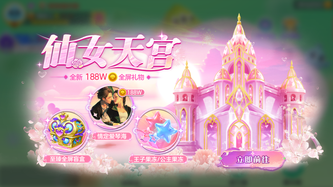 仙女天宫于女神节限时开放!曾经仙女们所经历的恋情化作实物显现在天宫之中,等待着有缘的球宝前来获取!价值188W金蘑菇的全新礼物「情定爱琴海」&价值30W金蘑菇「锦绣山河」只为等你!还有海量女神节盲盒拿到手软!快来探索仙女天宫,一起寻找仙子们的足迹!