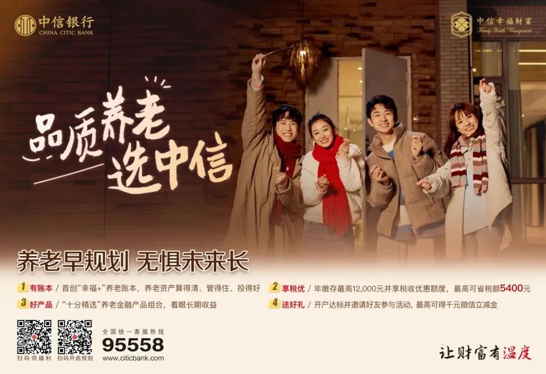 国之大者,为国为民;行之大者,信守温度。未来,中信银行将继续秉承“国之大者”的使命担当,积极履行社会责任,依托集团内外协同力量,推动养老金融高质量发展,以至诚之心持续陪伴客户,实现客户从基础的“生存型养老”到体面、高质量的“生活型养老”的转变,用有温度的服务,守护每一位客户的幸福未来。