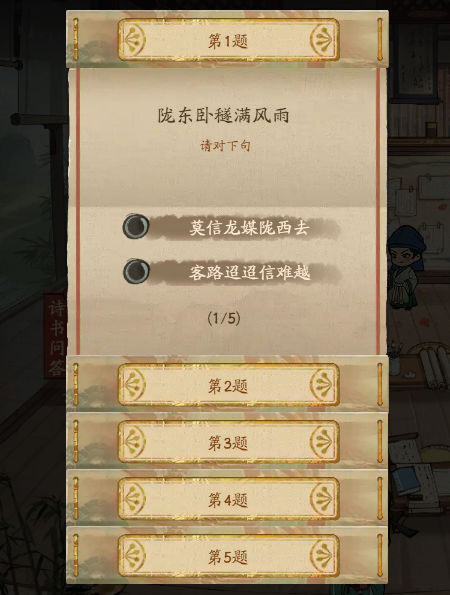 掌柜们谨慎判断问题对错,在乡试、省试和殿试中一考到底,最终将成为掌柜诗王!