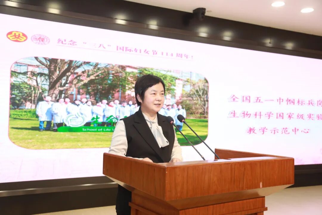 近100000人学时,250余项生物学实验项目的教学工作,60余个班级……这是生物科学国家级实验教学示范中心每年所承担的教学任务,为复旦生命科学专业人才培养提供了重要支撑作用。教学团队带头人孙璘介绍道,在这支首批入选“国家级实验教学示范中心”的教学团队中,女教师担任了中心主任、副主任、课程团队负责人等多个关键管理及教学岗位,“中心女性教师占69%,女党员占80%,女性高级职称占65%”,在各项工作中发扬先锋示范作用。中心坚持以立德树人为根本,坚持创新是第一动力,坚持面向国家需求,培育一流学术人才,多年来一直在全国发挥实验教学改革排头兵的作用。“我们将继续坚守实验教学岗位,以更加严谨的态度,更加务实的作风,做好本职工作,为学校的繁荣与进步贡献自己的智慧和力量。”孙璘说。