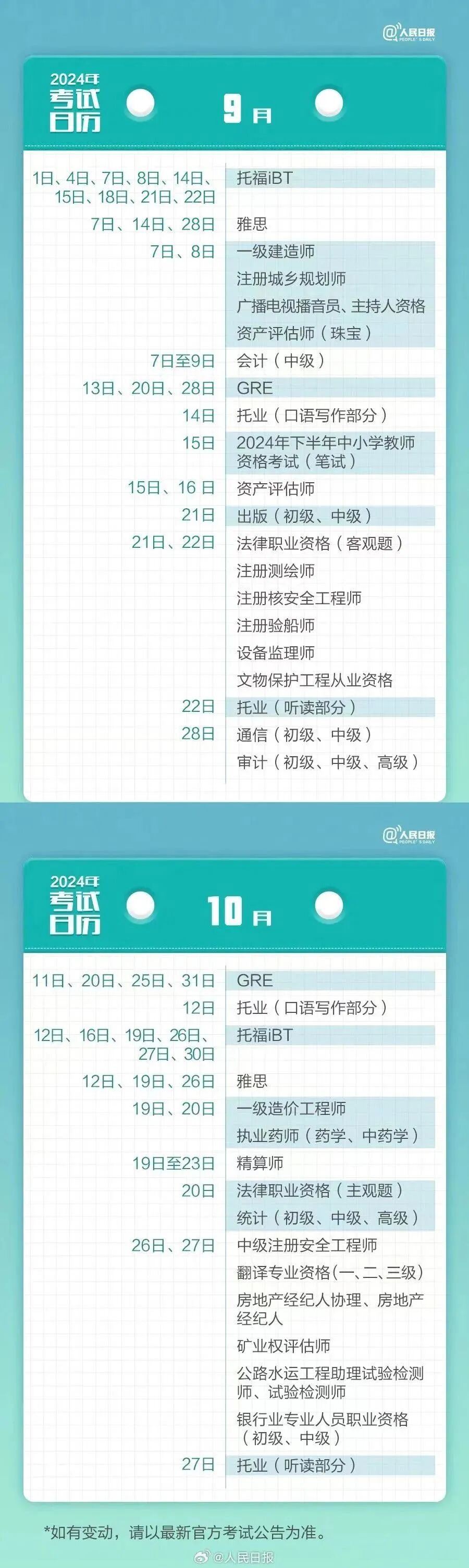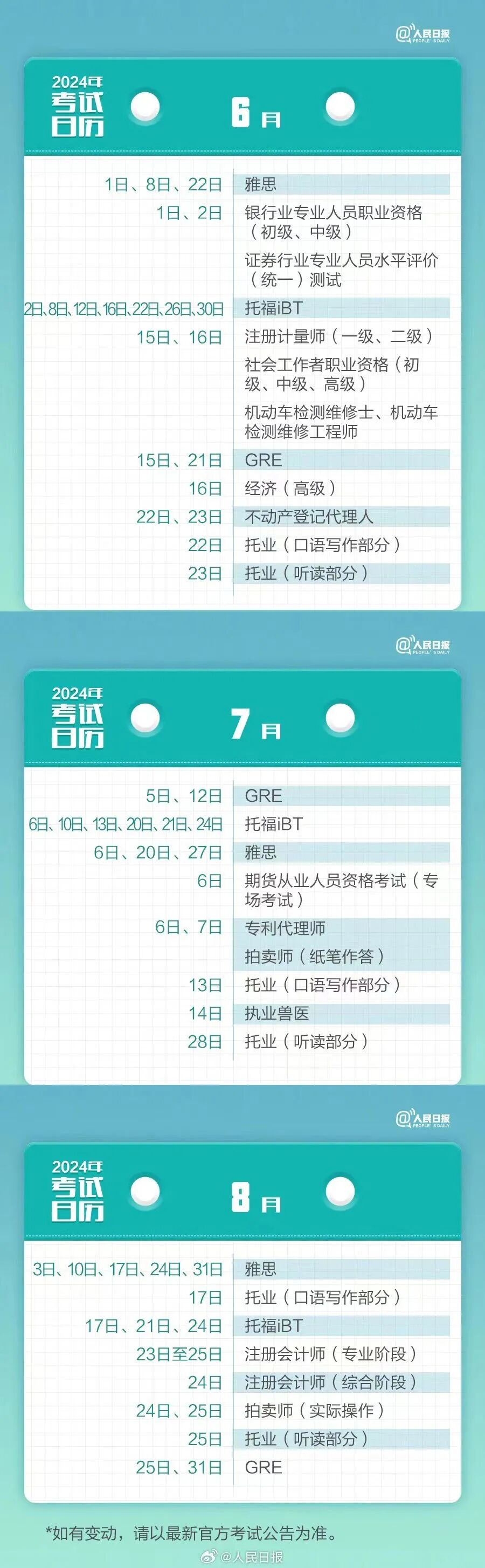 这些考试,请做好迎战!