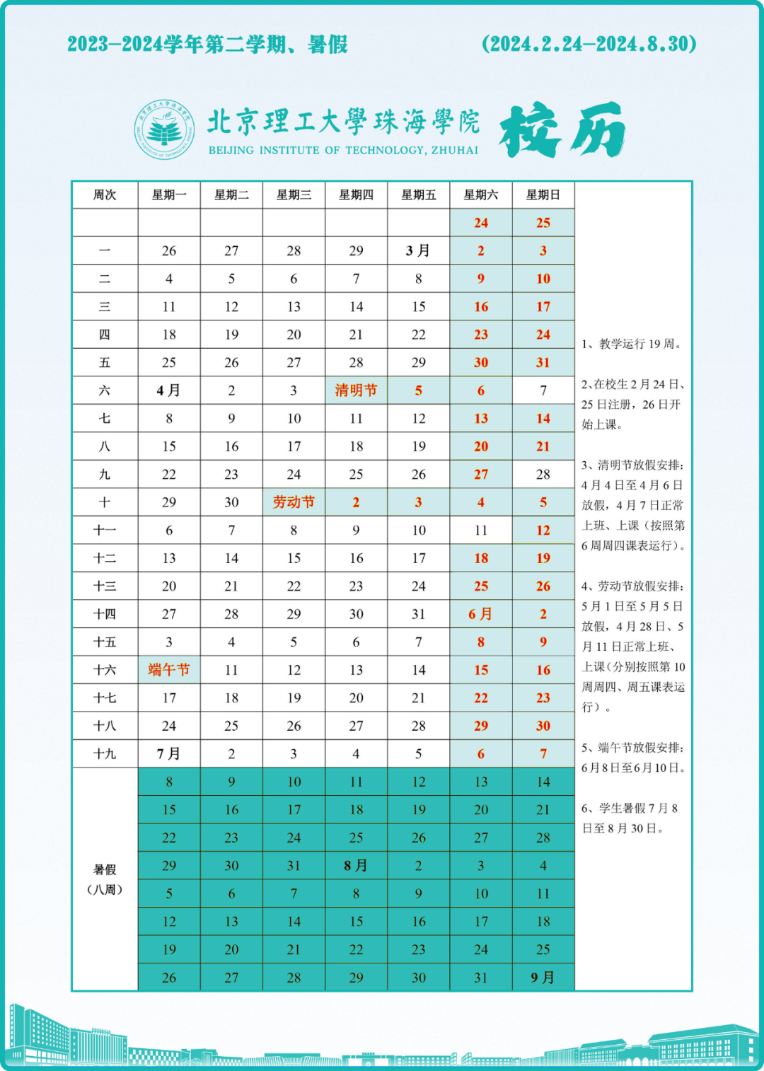 2023-2024学年第二学期校历