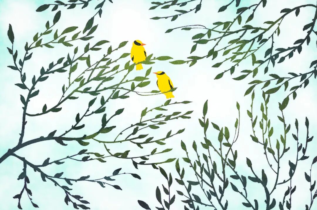 关于“仓庚鸣”的描绘,“诗圣”杜甫的《绝句》堪称绝唱,“两个黄鹂鸣翠柳,一行白鹭上青天。”推窗望去,两只黄鹂鸟在刚刚生出翠绿的枝条中翻飞鸣唱;抬眼望,春天青蓝的天空中,白鹭自由自在地飞翔。春之美好,尽在一眸之中。