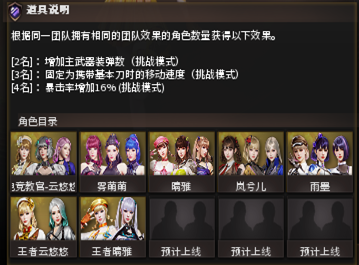 还记得在之前的2024年度大版本中,在游戏中新增了“女团团魂属性”。在同一挑战模式房间内,女团成员角色越多,就可以享受更多的挑战属性增益效果。
