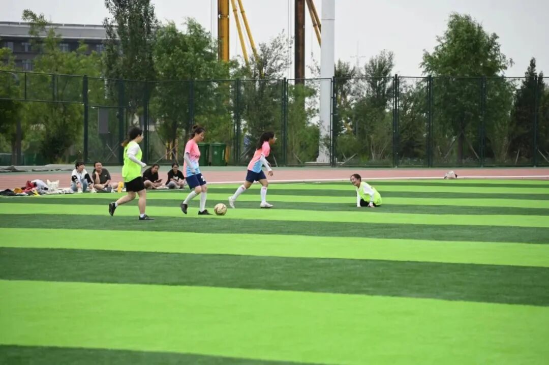 绿茵场上女足队员拼命防守、努力进攻