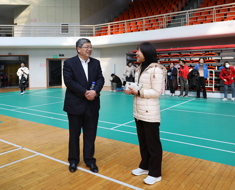 比赛开始前,王立兵走到女教职工中,亲切地询问大家的备赛情况,鼓励大家放松心情,赛出精彩。比赛现场,王立兵不时地为大家加油喝彩。女教职工们热情高涨,精神饱满,全身心投入比赛。比赛既紧张激烈又趣味横生,现场欢笑声不断,展现出了女性独有的风采和活力,让大家充分感受到运动带来的轻松与愉悦。