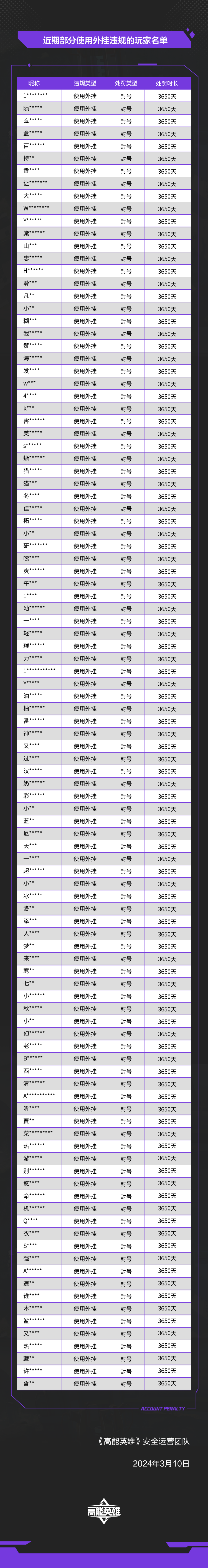 大家好,我是《高能英雄》安全大使罗杰斯,我们致力于营造公平公正的游戏环境,让每位玩家都能充分享受到游戏的乐趣。我们时刻关注外挂、第三方注入插件、恶意修改网络配置、篡改客户端等违规行为对游戏平衡性的危害,并持续更新安全策略。我们对外挂采取“零容忍”态度,一旦检测到使用外挂、修改客户端等作弊行为,将予以最严厉处罚,一律封号3650天(详见《高能英雄》玩家安全公约)。