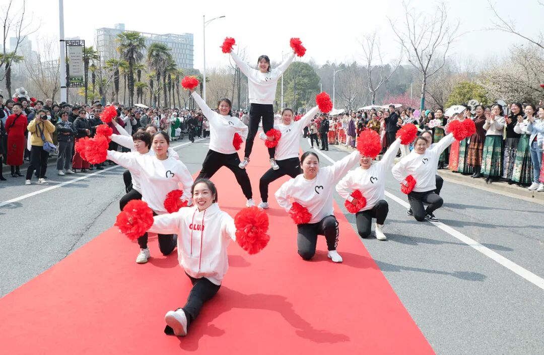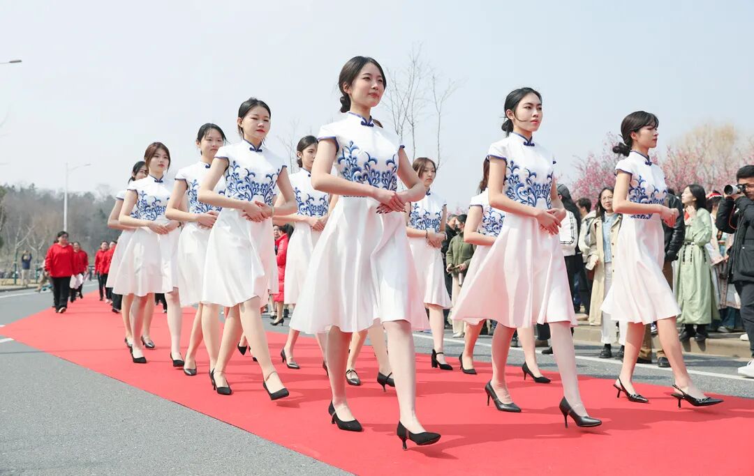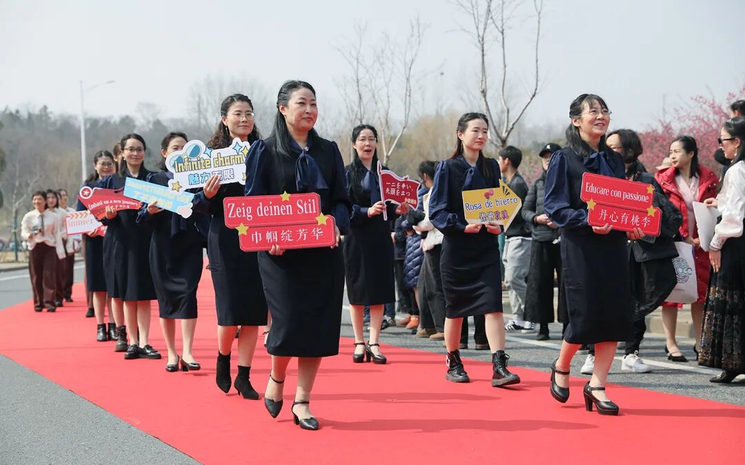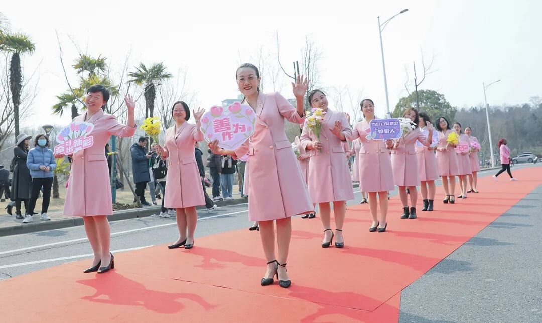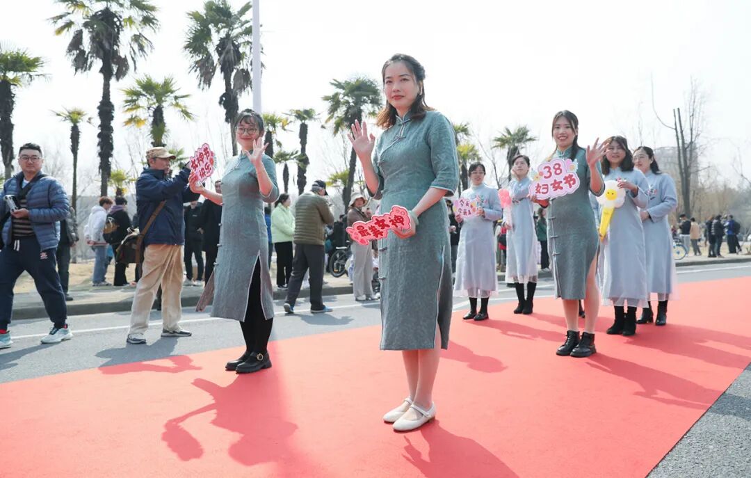 随后,各支队伍依次踏上红毯展示风采,并与领导合影留念。