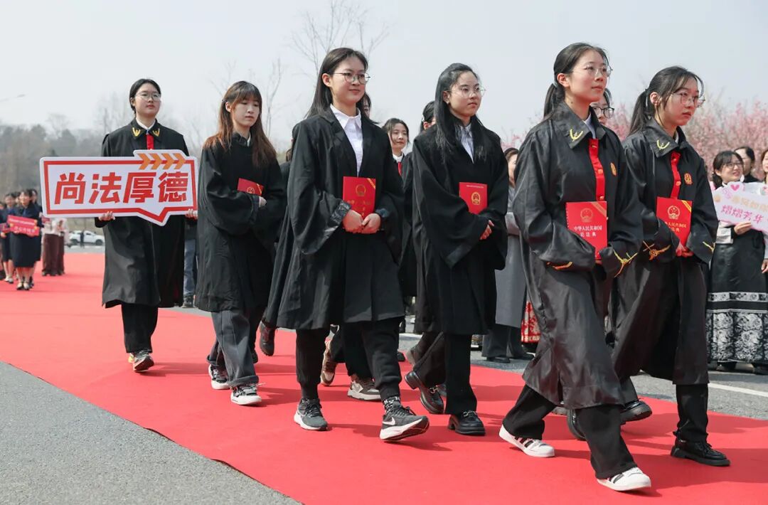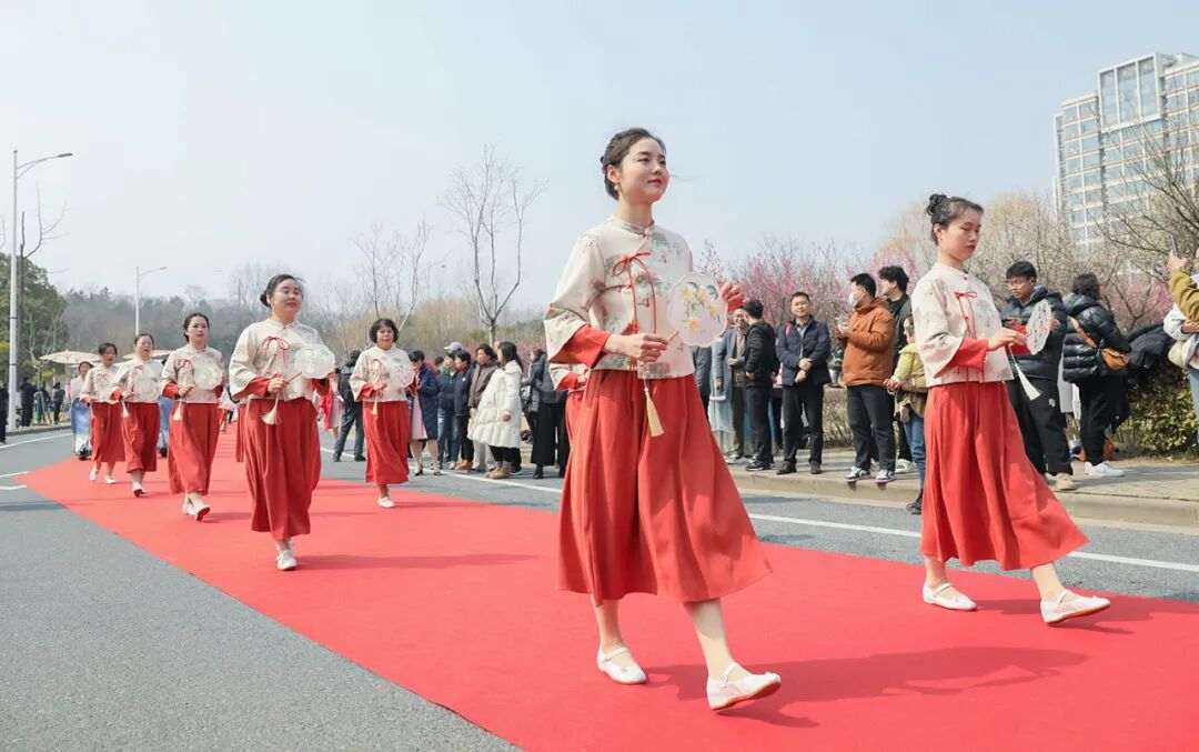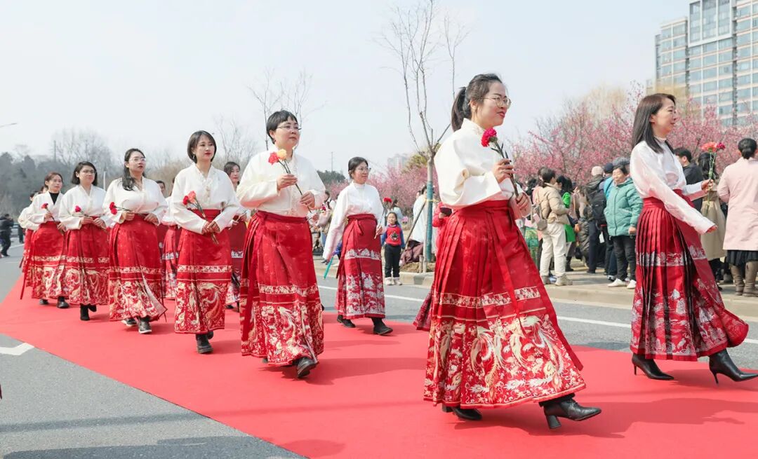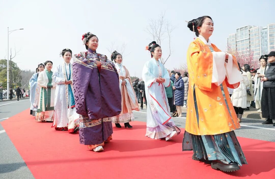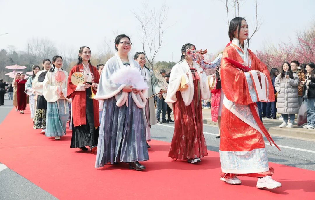随后,各支队伍依次踏上红毯展示风采,并与领导合影留念。