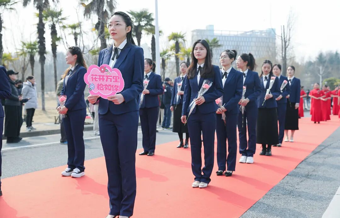 校领导来到女同胞当中,向她们送上美丽的鲜花和节日的祝福。