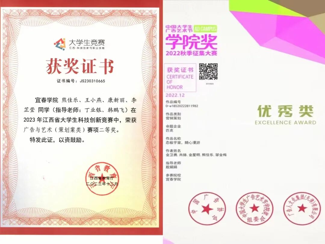 2023年,获第15届大学生广告艺术大赛江西省二等奖。