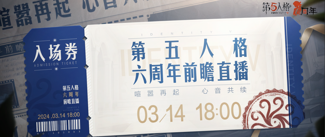 【第五人格六周年】周年庆前瞻直播将于3月14日在各大平台开启!