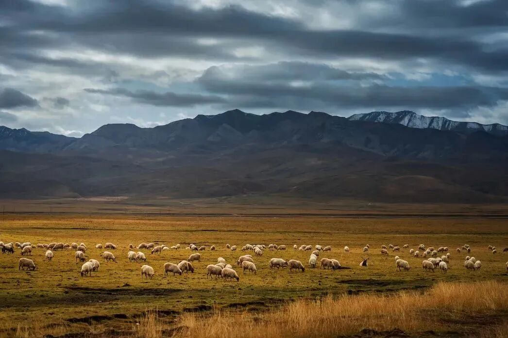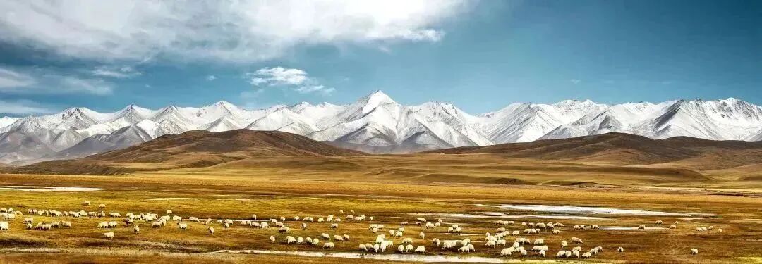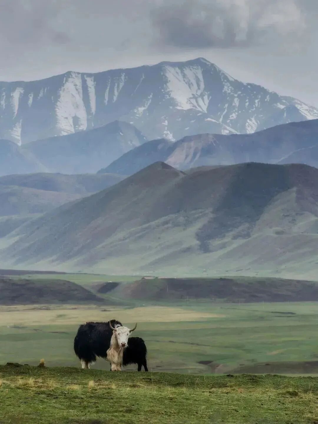 依托巍峨的祁连山脉,草地与雪山相互辉映,形成了高山牧场的独特景致。