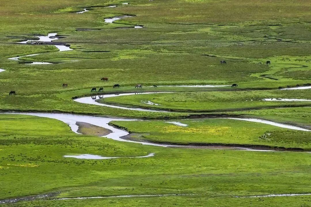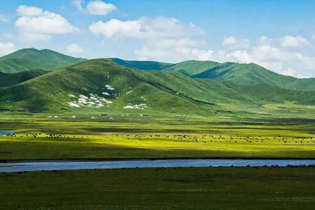 草原上河流交织,湿地众多,生态环境良好,同时具有丹霞地质风光和浓厚的藏族民俗文化。