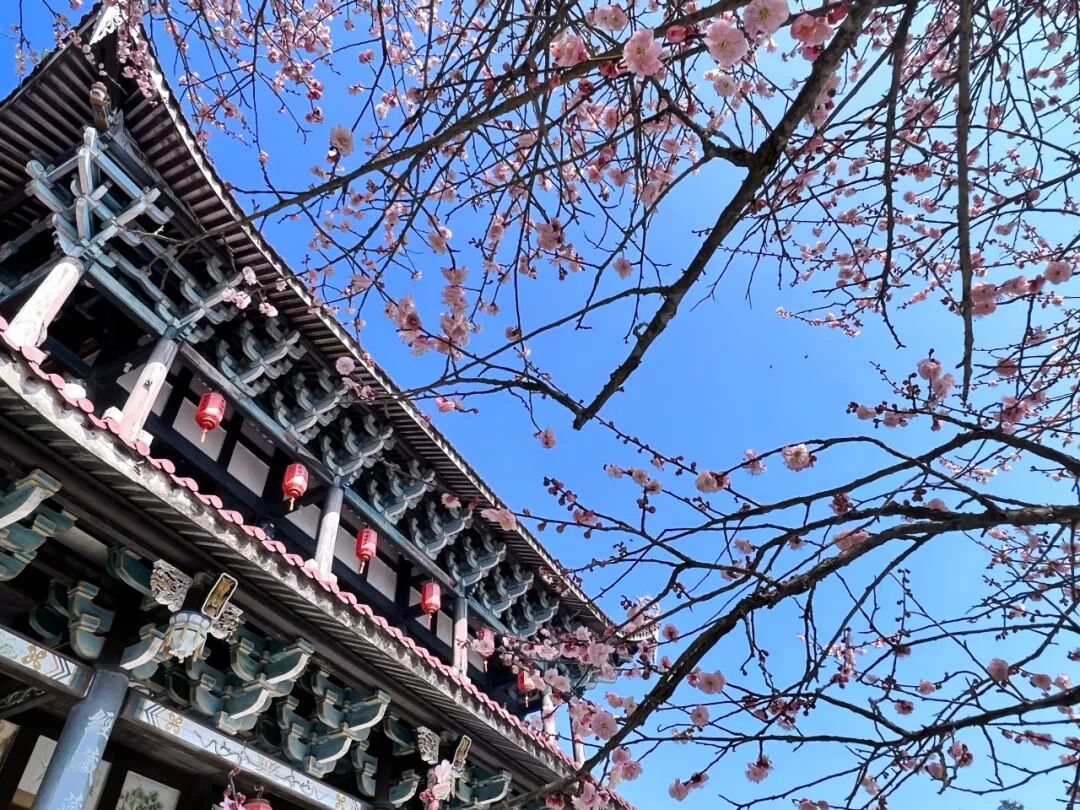上春山,观千年古刹缀粉黛;赏花海,闻满园梅花醉人香。坐落于福州市晋安区寿山乡的林阳禅寺始建于五代后唐长兴二年(931年),民国元年(1912年)重建。冬去春来之际,千年古刹内各色梅花争相盛放,层层叠叠的梅花点缀着古寺的白墙飞檐,别有一番韵味。