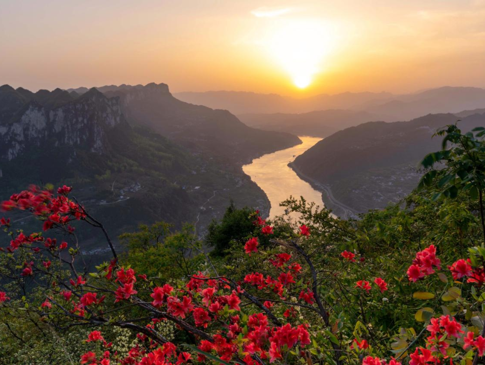 荆楚西陵,以险称奇,踞傲逞强。西陵峡,崖壁陡峭,江水奔腾,展示着大自然的神奇与壮丽,也见证了无数历史的变迁。杜鹃花,春天的使者,如火如荼地盛开在西陵峡两侧,为峡谷披上了一层斑斓的霞光,让险峻而深邃的峡谷多了一份妩媚与柔情。