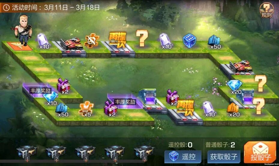 【活动详情】战士们完成任务获得骰子,使用骰子即可摇取步数,达到对应格子即可获得对应奖励!