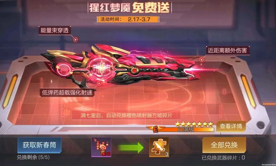 【活动详情】收集新春筒兑换极品奖励,红SS武器猩红梦魇免费送。