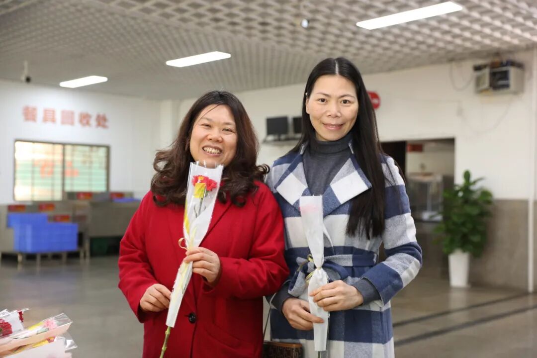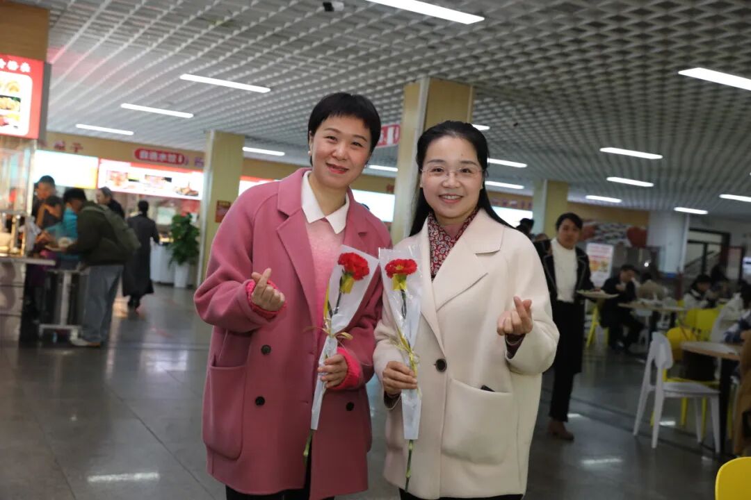 3月8日,副校长李若梅(校工会主席)深入一线为全校女职工送祝福。