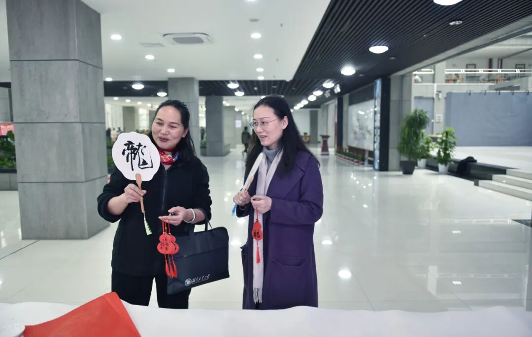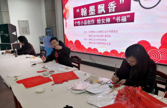 “翰墨飘香”个性小品创作给女神“书福”的书法活动在图书馆大厅进行。